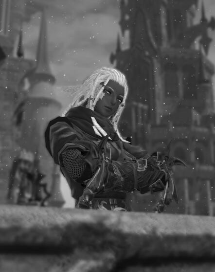 This man carries himself with an unmistakable air of elegance. There is a quiet confidence about him—a poised certainty that only reveals itself when the moment demands it. Yet, more often than not, he remains an observer, his gaze sharp and deliberate. But then there is his voice. It is subtle, yet unmistakable—a rich cadence, laced with an accent that seems to curl around each word with an artistry all its own. The way his tongue dances on syllables, drawing out the melody of his heritage, makes it clear: he is a man of Sharlayan descent.Though he moves with his companions, his presence is never quite the same as theirs. He wears the guise of one who follows, yet there is something more—always that journal, ever-present, hanging at his left hip like a quiet companion. A weapon, yes, but it is the weight of knowledge that truly defines him. He is not simply walking beside them—he is studying, watching, observing, with a gaze that could pierce through the veil of any situation. And more than once it seems the focus of his scrutiny seems to rest on you, as if you were the subject of an unspoken study.